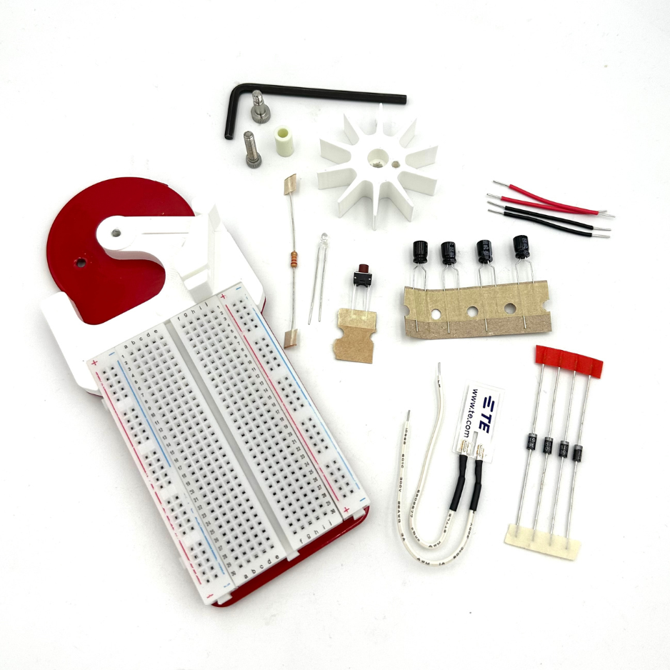 Explore the lore of piezo technology! Did this phenomenon power the ancient pyramids? Does ball lightning arise from earthquake-level piezoelectricity? One thing is for sure, with a small paddle wheel and a piezo tab, you can generate and store small amounts of electricity. This is the STEM kit for anyone curious about real-world piezo applications. Follow the project booklet to experience both direct output and energy storage modes of operation.